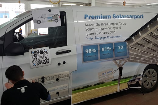 Vor allem für Gewerbetreibende ist die Firmenpräsentation interessant. Diese individuelle Fahrzeugbeschriftung mit Firmenlogo, Claim und Geschäftsangaben ist in der heutigen Zeit – angefangen beim PKW über Transporter bis hin zum LKW – ein absolutes Muss. Aber nicht nur in der Geschäftswelt spielt die Werbetechnik eine große Rolle. Auch im Bereich Sport erfreut sich die Werbetechnik großer Beliebtheit zur Präsentation von Sponsoren. Dank des Digitaldruckverfahrens lassen wir Ihre Wunschvorstellungen Wirklichkeit werden. Grenzen? Gibt es nicht! Und sollten Sie noch keine konkreten Vorstellungen oder Fragen haben, dann stehen wir Ihnen sehr gern bei der Entwicklung Ihres eigenen Designs zur Seite.